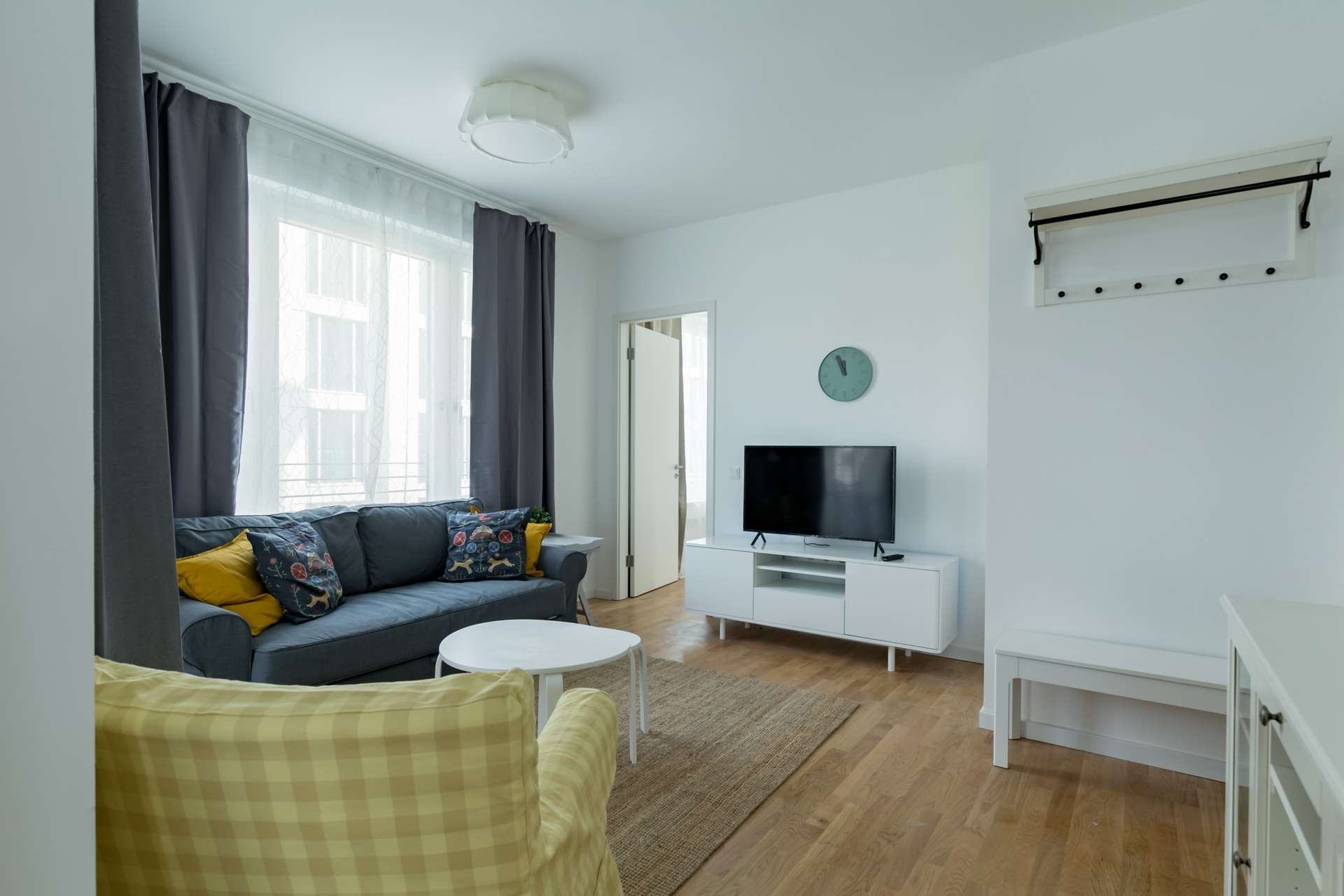 Diese helle und gemütliche 2-Zimmer-Wohnung befindet sich im 5. Obergeschoss eines gepflegten Mehrfamilienhauses mit Aufzug in Berlin. Die insgesamt 64 m² Wohnfläche verteilen sich auf ein geräumiges Wohnzimmer, ein Schlafzimmer, eine separate Küche und ein Badezimmer.