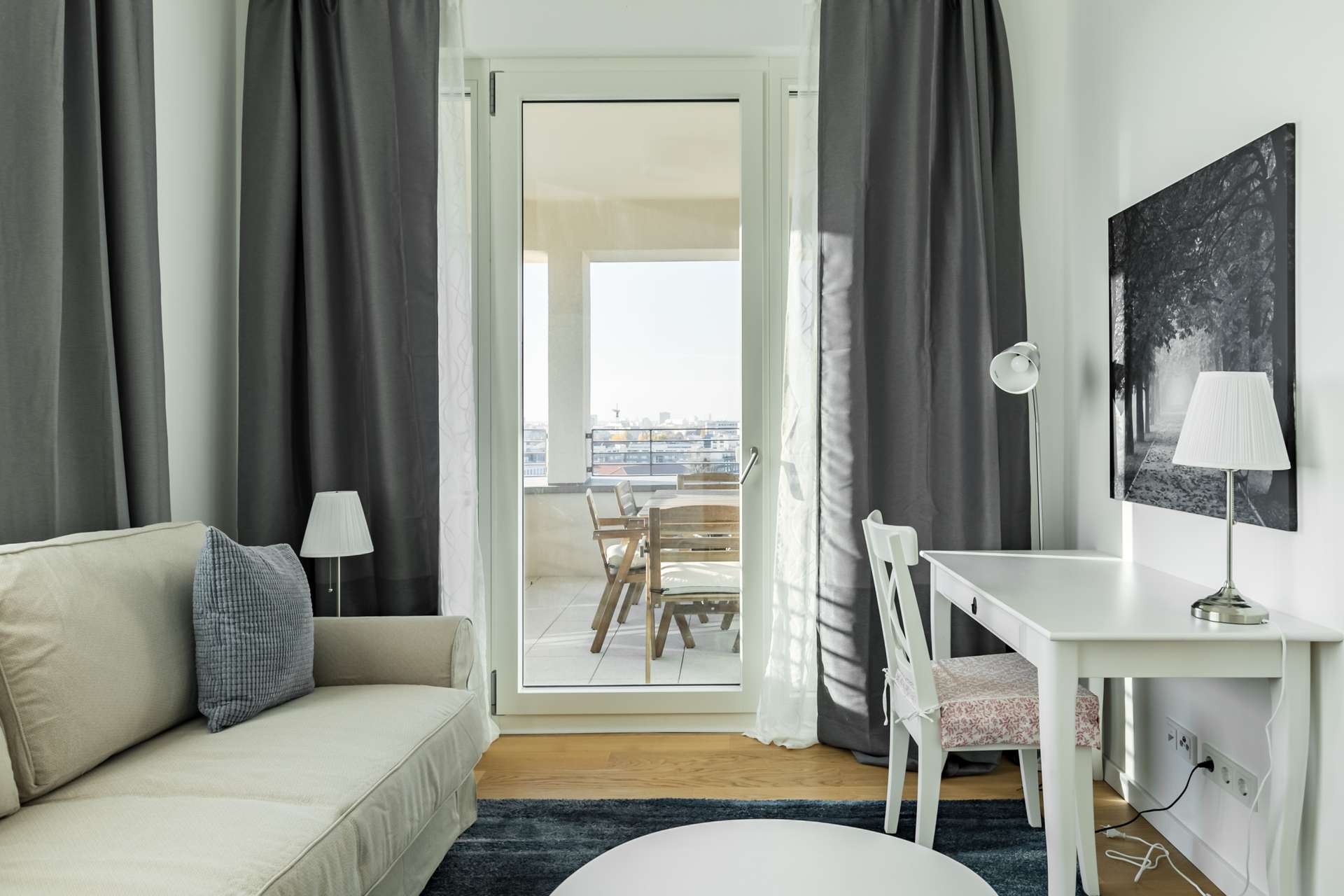 The highlight of the flat is the spacious, south-west-facing balcony, from which you can enjoy a marvellous view over the city.