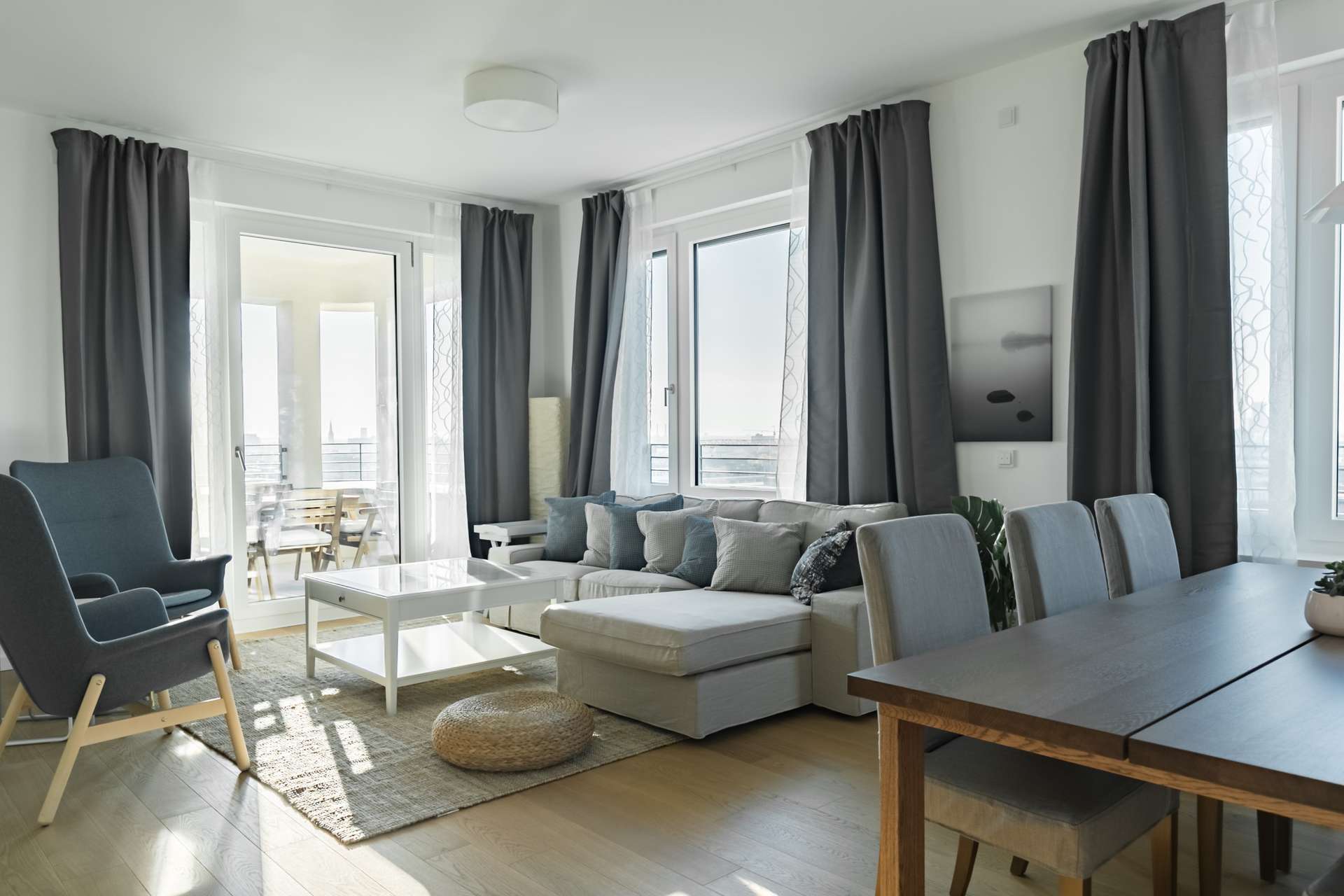 A spacious 4-room flat in a central location in Berlin Mitte is available for rent. The flat is on the 7th floor of a modern apartment building and is easily accessible by lift.